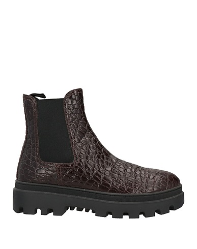 leather, crocodile print, no appliqués, solid colour, leather backing, elasticised gores, round toeline, square heel, rubber cleated sole, contains non-textile parts of animal origin, chunky boots