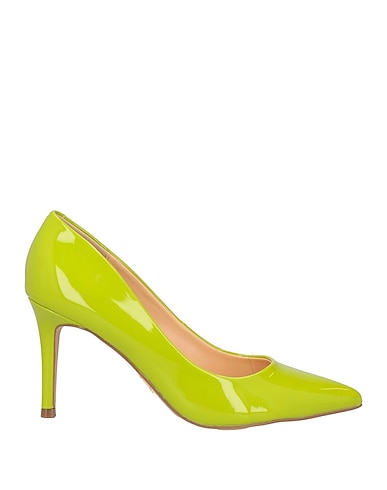 coated fabric, varnished effect, no appliqués, solid colour, fully lined, narrow toeline, spike heel, covered heel, rubber sole, stilettos