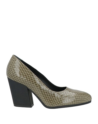 leather, snakeskin print, no appliqués, solid colour, leather backing, round toeline, square heel, rubber sole, contains non-textile parts of animal origin, courts