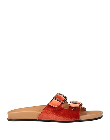 velvet, no appliqués, solid colour, leather backing, buckle fastening, round toeline, flat, rubber cleated sole, contains non-textile parts of animal origin, technical sandals