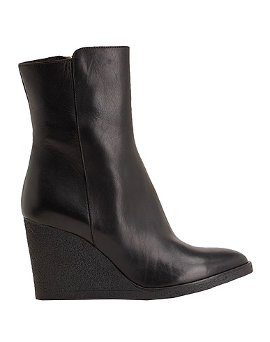 no appliqués, solid colour, leather backing, zipper closure, narrow toeline, wedge heel, rubber sole, contains non-textile parts of animal origin, ankle boots