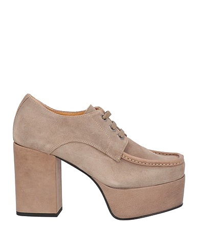 lace-up shoes, suede, plain colour, no appliqués, leather lining, round toe, square heel, rubber cleated sole, contains non-textile parts of animal origin