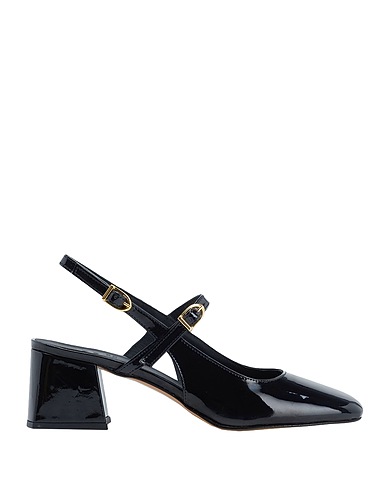 leather, varnished effect, no appliqués, solid colour, leather backing, buckle fastening, square toeline, square heel, covered heel, rubber sole, contains non-textile parts of animal origin, slingback courts