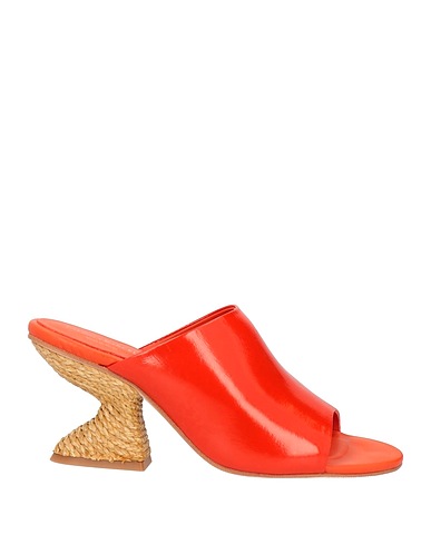 leather, no appliqués, solid colour, leather backing, round toeline, spool heel, leather/rubber sole, contains non-textile parts of animal origin, slide sandals