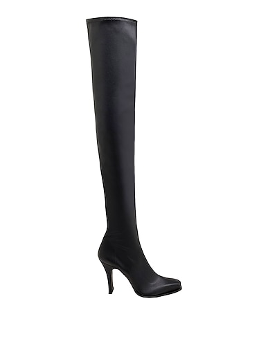 coated fabric, no appliqués, plain colour, fabric inner, square toeline, geometric heel, covered heel, rubber sole, over-the-knee boots model