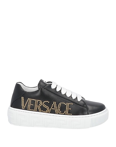 leather, brand logo, studs, plain colour with appliqués, leather lining, laces, round toeline, flat, rubber cleated sole, contains non-textile parts of animal origin, low-top trainers