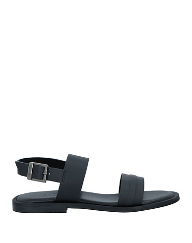 leather, no appliqués, plain colour, leather lining, buckle fastening, round toe, flat, rubber sole, contains non-textile parts of animal origin, ankle strap sandals