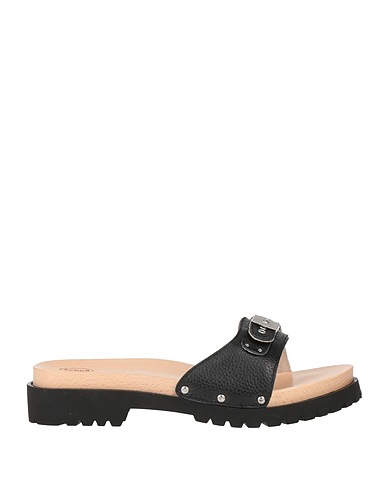 slide sandals, leather, plain colour, no appliqués, round toe, block heel, rubber cleated sole, leather lining, contains non-textile parts of animal origin