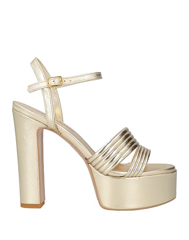 leather, metallic, no appliqués, plain colour, leather lining, buckle-fastening ankle strap, round toe, square heel, rubber sole, contains non-textile parts of animal origin, ankle strap sandals