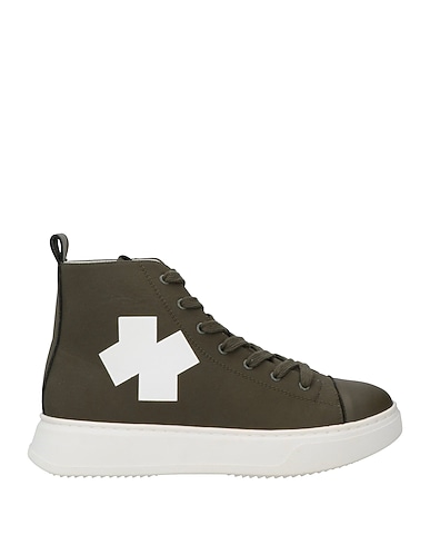 leather, woven, brand logo, plain colour, leather lining, lace-up, round toe, flat, rubber sole, contains non-textile parts of animal origin, high-top trainers