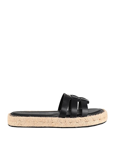 leather, brand logo, plain colour, leather lining, square toe, flat, rubber sole, contains non-textile parts of animal origin, espadrille sandals