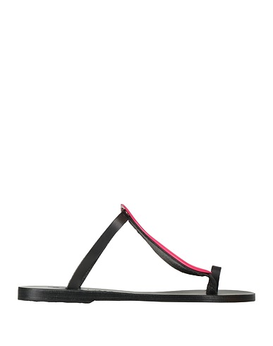 toe strap sandals, leather, plain colour with appliqués, embellished, leather lining, round toe, flat, leather/rubber sole, handmade, contains non-textile parts of animal origin