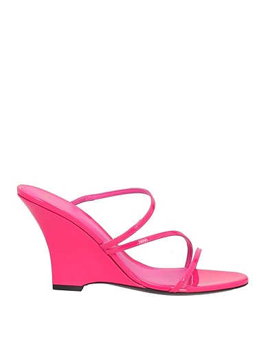 sandals, patent leather, plain colour, no appliqués, leather lining, round toe, wedge heel, leather/rubber sole, contains non-textile parts of animal origin
