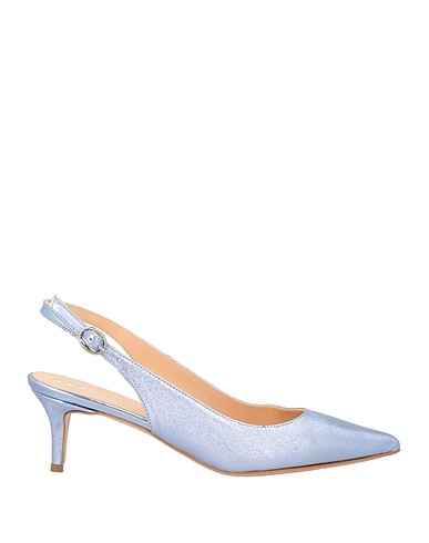 slingback pumps, leather, metallic, plain colour, no appliqués, leather lining, pointed toe, kitten heel, rubber sole, contains non-textile parts of animal origin