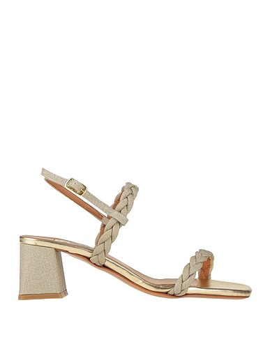ankle strap sandals, woven, metallic, plain colour, glittered, leather lining, buckle-fastening ankle strap, square toe, square heel, covered heel, leather sole, contains non-textile parts of animal origin