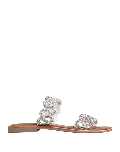 sandals, woven, plain colour with appliqués, crystals, leather lining, round toe, flat, rubber sole, contains non-textile parts of animal origin