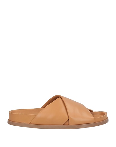 sandals, pebbled-leather, plain colour, no appliqués, leather lining, round toe, flat, rubber sole, contains non-textile parts of animal origin