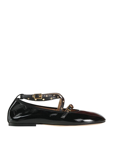 ballet flats, patent leather, plain colour, no appliqués, leather lining, buckle-fastening ankle strap, round toe, flat, leather sole, contains non-textile parts of animal origin