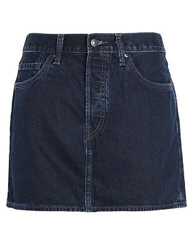 flared skirt, denim, plain colour, brand logo, dark wash, belt loops, concealed button fastenings, model: icon skirt, this brand runs small