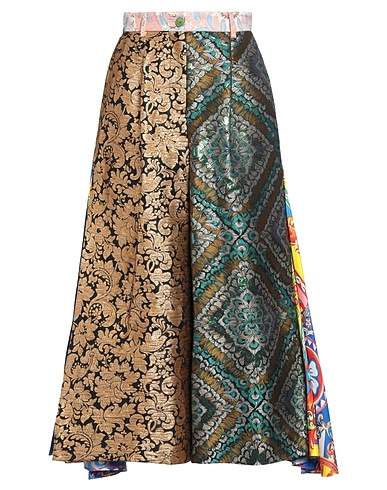 plain weave, jacquard, lamé, no appliqués, floral-print, high waisted, wide leg, regular fit, zipper closure, button closing, multipockets, chinos