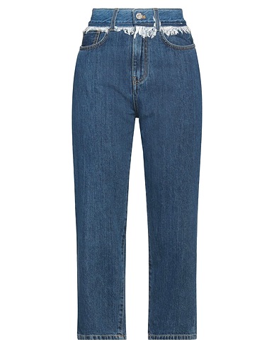 denim, fringes, brand logo, plain colour, medium wash, high waisted, unlined, zipper closure, 1 button, five pockets, tapered model