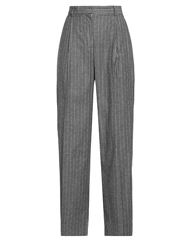 flannel, no appliqués, pinstriped, high waisted, straight leg, regular fit, hook fastenings, zip fastening, multipockets, machine wash or dry clean, do not tumble dry, do not bleach, tailored