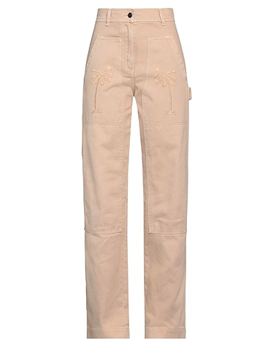 gabardine, embroidered, brand logo, plain colour with appliqués, high waisted, belt loops, straight leg, relaxed fit, 1 button, zip fastening, multipockets, machine wash, do not tumble dry, do not bleach, pants