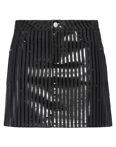 coated fabric, patent-effect, no appliqués, striped, fully lined, zip fastening, 1 button, multipockets, do not bleach, do not tumble dry, do not iron, flared skirt