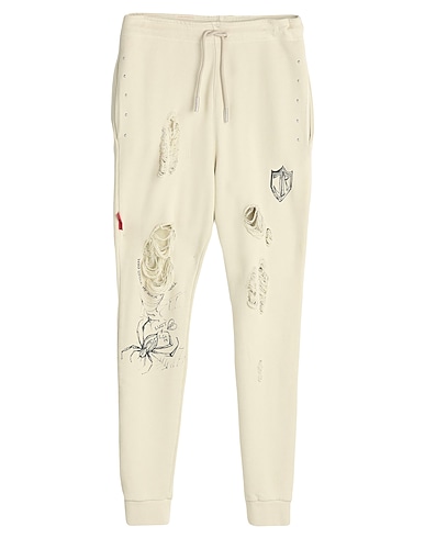 fleece, distressed, studs, print, brand logo, plain colour with appliqués, high waisted, elasticised waist, regular fit, drawstring fastening, multipockets, machine wash, do not bleach, do not tumble dry, track pants