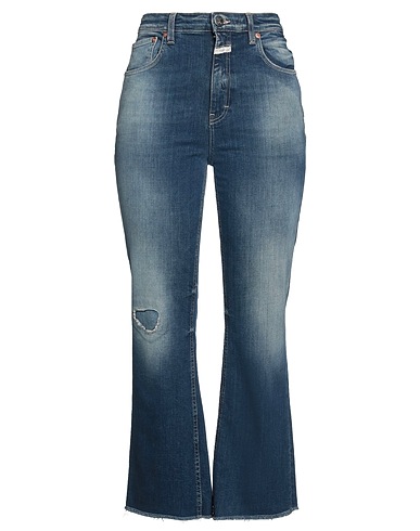 denim, faded, brand logo, plain colour, medium wash, high waisted, belt loops, regular fit, 1 button, zip fastening, multipockets, stretch, machine wash or dry clean, do not bleach, do not tumble dry, boot-cut jeans, designed for a loose fit