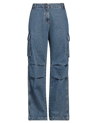 cargo jeans, denim, brand logo, plain colour, medium wash, high waisted, belt loops, relaxed fit, zip fastening, snap fastenings, multipockets, machine wash, do not bleach, do not tumble dry
