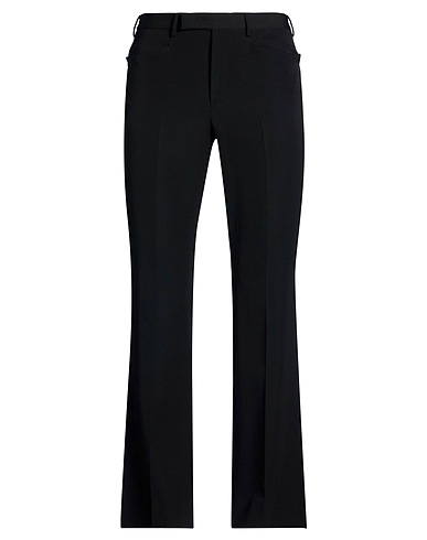 tailored trousers, wool, plain colour, detachable application, mid rise, belt loops, flared leg, regular fit, zip fastening, hook fastenings, multipockets, dry clean, do not bleach, do not tumble dry