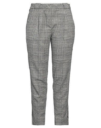 tapered trousers, flannel, prince of wales check, no appliqués, high waisted, regular fit, zip fastening, hook fastenings, multipockets, dry clean, do not tumble dry