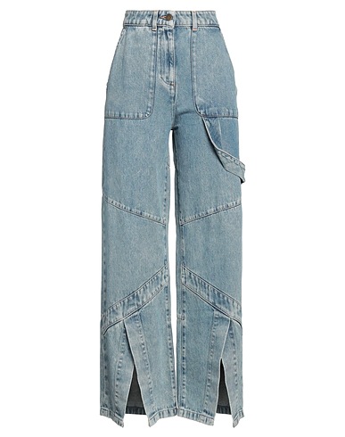 wide-leg jeans, denim, plain colour, brand logo, light wash, high waisted, belt loops, regular fit, zip fastening, 1 button, multipockets, hand wash or dry clean, do not bleach, do not tumble dry