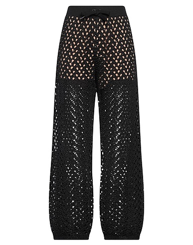 wide-leg trousers, crochet-knit, medium-weight knit, plain colour, sequins, high waisted, regular fit, drawstring fastening, multipockets, hand wash or dry clean, do not bleach, do not tumble dry