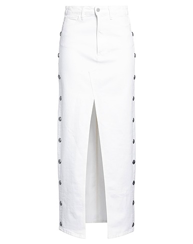 flared skirt, denim, stretchy fabric, plain colour with appliqués, button-embellished, coloured wash, zip fastening, 1 button, multipockets, machine wash or dry clean, do not bleach, do not tumble dry