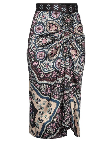flared skirt, satin, floral-print, gathered, unlined, zip fastening, 1 button, without pockets, machine wash or dry clean, do not bleach, do not tumble dry