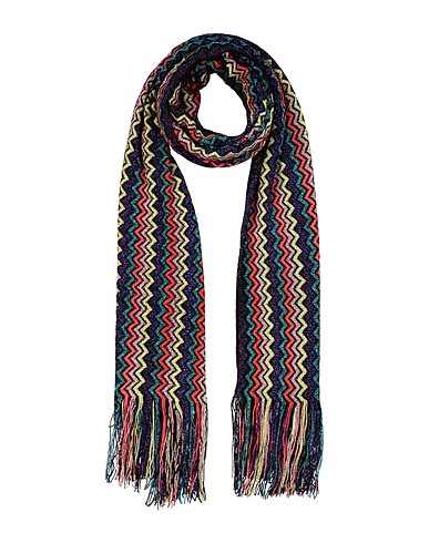 scarf, crochet-knit, metallic, lightweight knit, multicolour, fringes, dry clean, do not bleach, do not tumble dry