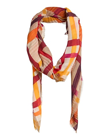 square scarf, knitted, lightweight knit, tartan pattern, no appliqués, dry clean, do not bleach, do not tumble dry