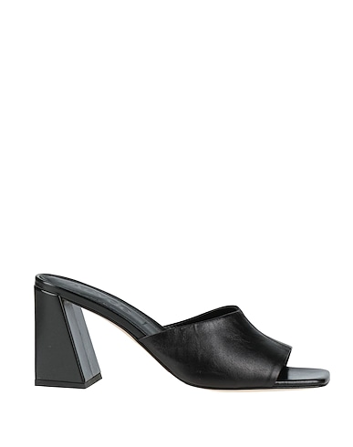 slide sandals, leather, plain colour, no appliqués, leather lining, square toe, square heel, covered heel, leather sole, contains non-textile parts of animal origin