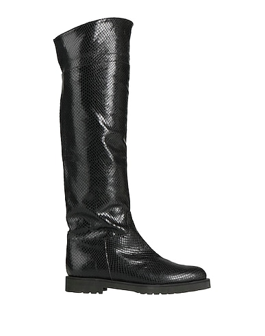 boots, leather, snakeskin-print, no appliqués, leather lining, round toe, flat, lug sole, contains non-textile parts of animal origin