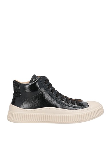 high-top trainers, patent leather, plain colour with appliqués, glittered, leather lining, zip fastening, lace-up, round toe, rubber cleated sole, contains non-textile parts of animal origin