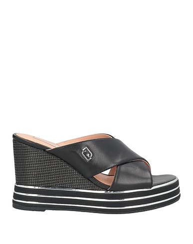 sandals, leather, plain colour, brand logo, leather lining, square toe, wedge heel, covered wedge, rubber sole, contains non-textile parts of animal origin