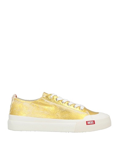 low-top trainers, gabardine, coated effect, metallic, plain colour, brand logo, fully lined, lace-up, round toe, rubber cleated sole
