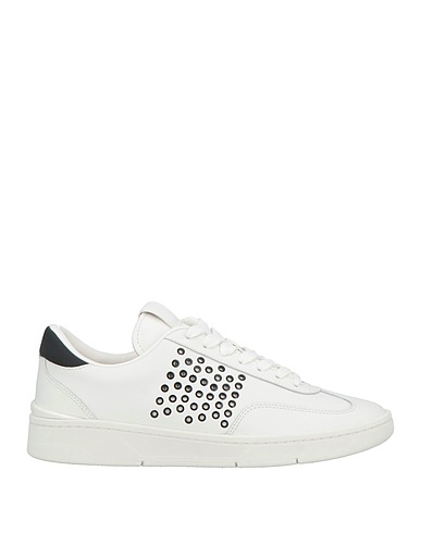 low-top trainers, leather, plain colour with appliqués, studs, brand logo, leather lining, lace-up, round toe, rubber sole, contains non-textile parts of animal origin
