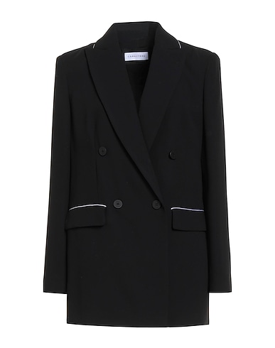 double-breasted blazer, crepe, plain colour, piped trims, lapel collar, long sleeves, shoulder pads, fully lined, button fastenings, flap pockets, dry clean, do not bleach, do not tumble dry
