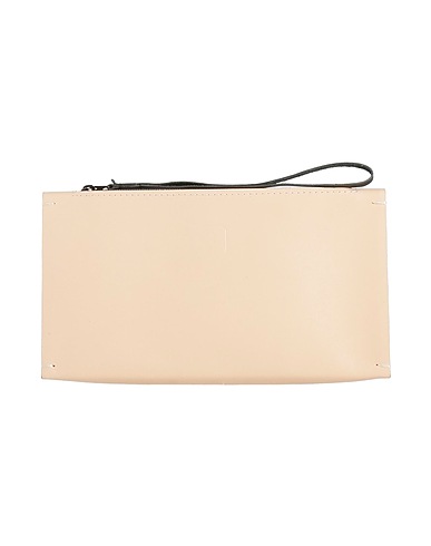 wristlet bag, leather, plain colour, brand logo, fully lined, external pocket, bag handle, medium size, contains non-textile parts of animal origin