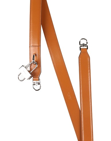 leather, plain colour with appliqués, brand logo, leather lining, leather straps, contains non-textile parts of animal origin