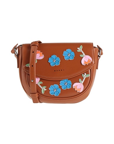 saddle bag, synthetic material, plain colour with appliqués, floral appliqués, brand logo, magnetic fastening, fully lined, adjustable shoulder strap, medium size