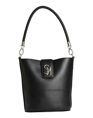 bucket bag, synthetic material, plain colour with appliqués, brand logo, magnetic fastening, fully lined, internal pockets, internal zip pocket, external pocket, detachable top handle, detachable shoulder strap, medium size